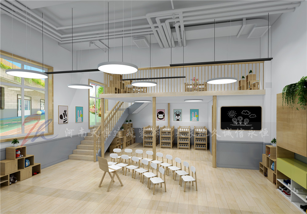 設(shè)計說明: 設(shè)計理念基于自然光、空間、簡潔性、可持續(xù)性以及建筑與孩子的緊密關(guān)系。在原有的平面布局中,根據(jù)原有建筑空間的特性,并且在滿足幼兒功能的前提下,盡可能多地去創(chuàng)造出了豐富的公共空間,讓陽光照進(jìn)來,讓風(fēng)穿堂而過,讓孩子們都能找到許多好玩有趣的活動場地,伴隨著他們成長,在成長的過程中獲得更多各種尺度的空間體驗. 多變的幼兒空間類型,不僅可以為孩子們提供探索的動力,同時也會豐富兒童嬉戲與互動的方式。在這體驗式的空間中,通過對空間的塑型創(chuàng)造出符合兒童特質(zhì)的體驗場所,在不同空間中的不同活動,可以體現(xiàn)孩子們外向與內(nèi)向的性格特質(zhì),可以激發(fā)兒童的想象力與創(chuàng)造力 摒棄各種具象生硬、過度裝飾、浮于表面且缺乏想象力的兒童空間設(shè)計手法,轉(zhuǎn)而從空間形態(tài)本身的趣味性出發(fā),將整個空間本身打造成一個巨大的玩具,讓孩子們毫無束縛地、自發(fā)地去探索、發(fā)掘和創(chuàng)造屬于自己的趣味空間和生動體驗。