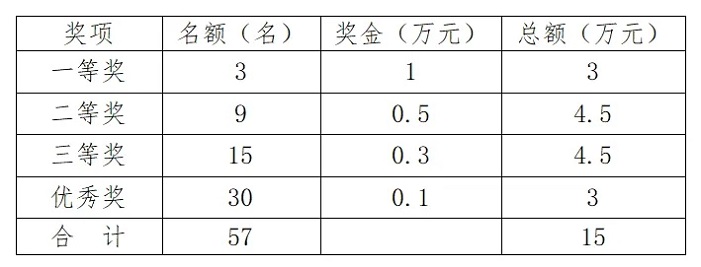 子賽道設一等獎1名、二等獎5名、三等獎10名,優秀獎10名,獲獎者將根據子賽道獎項設置頒發榮譽證書和獎金,子賽道一、二、三等獎獲獎者將直接進入主賽道評審。(所有獎金均為稅前金額)